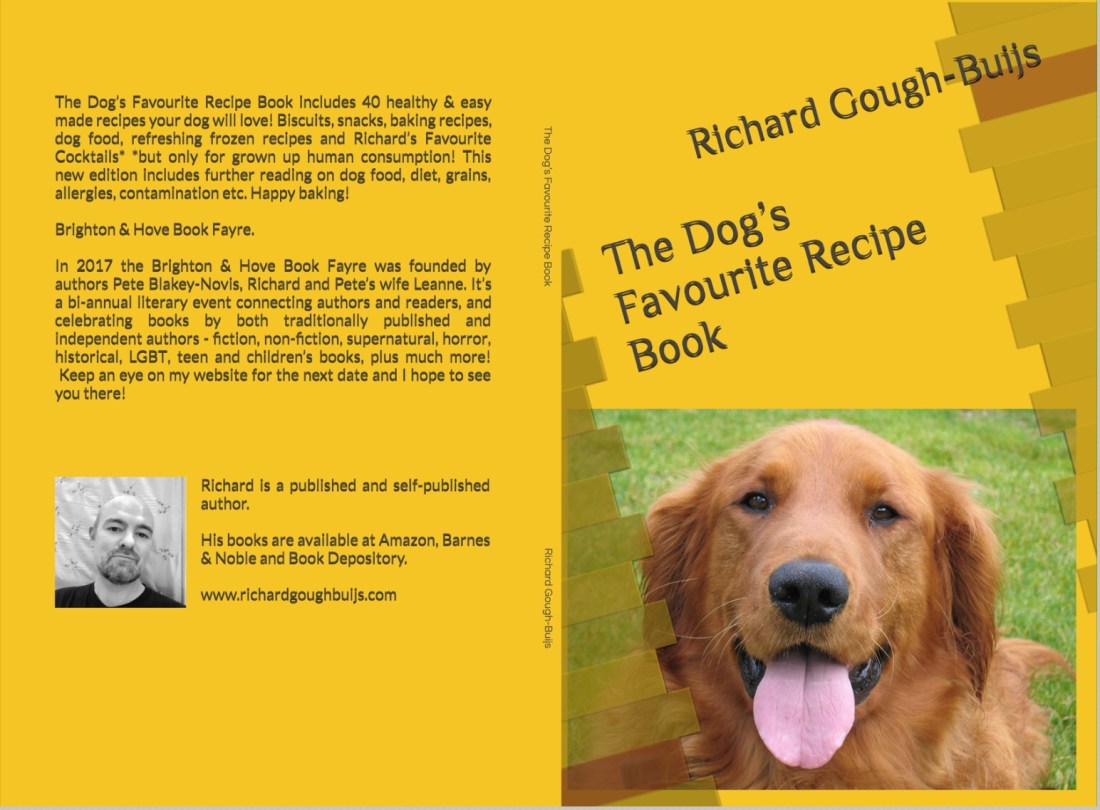 The book includes 40 healthy & easy made recipes your dog will love! Biscuits, snacks, baking recipes, dog food, refreshing frozen recipes and Richard’s Favourite Cocktails* (*but only for grown up human consumption!) This new edition includes further reading on dog food, diet, grains, allergies, contamination etc.